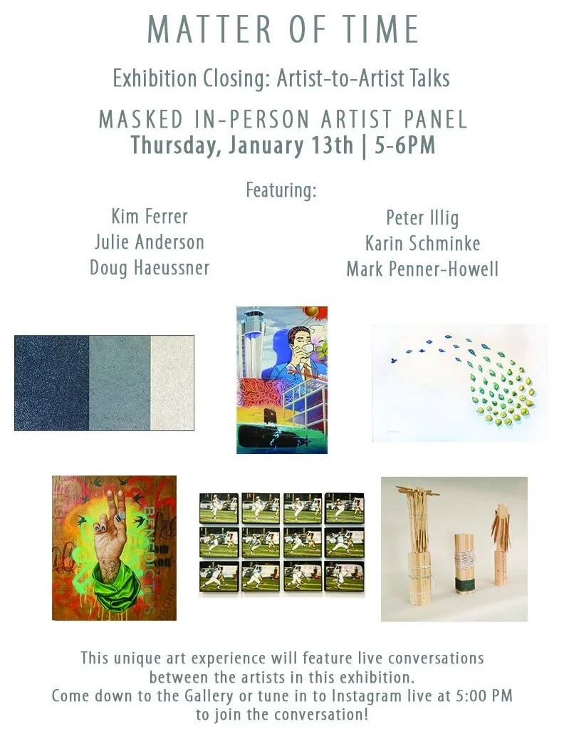 Time is simultaneously an intangible concept and the governing factor of all tangible phenomena. It is a universal construct that has been exhibited in every culture and language throughout history, yet seemingly impossible to grasp. While experiencing another person's perception of time is certainly unattainable, these 6 six artists featured in MATTER OF TIME attempt to share their perceptions of their reality. Through painting, sculpture, photography & mixed media, these artists address the complex, nonlinear sequence of how time is perceived, measured, and experienced.