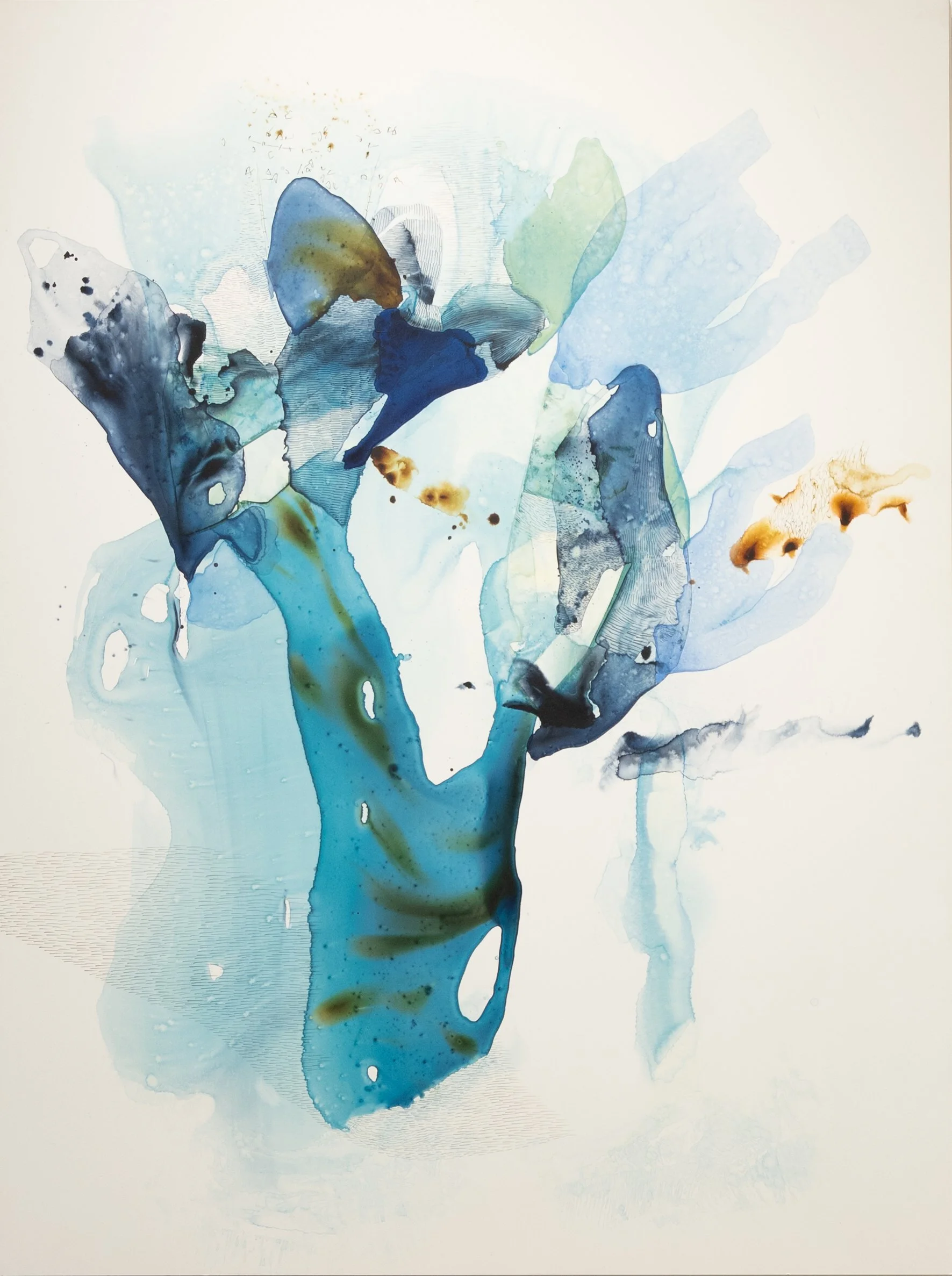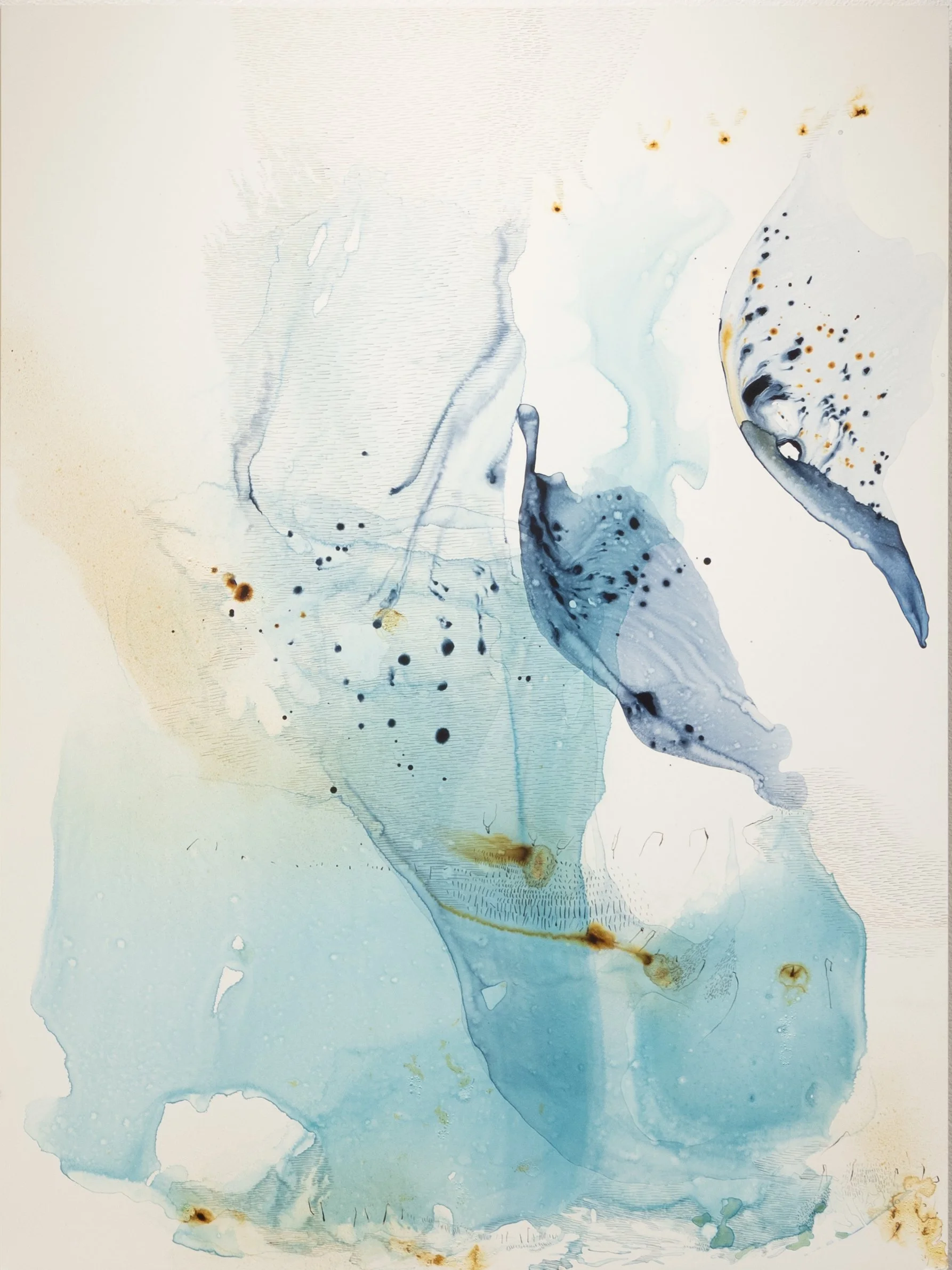Through the quiet tension between the richness of color and the delicacy of watercolor, ANA ŽANIĆ reveals the fragile grace of nature’s shifting realms. Moments of human presence emerge through intricate mark-making, blending with organic textures to form atmospheric compositions that move fluidly between observation and memory.